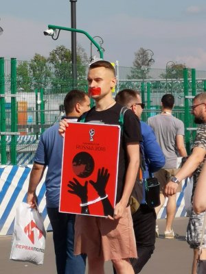 Вечером 14 июля около стадиона «Санкт-Петербург» на Крестовском острове полиция задержала активиста Егора Екимова, вышедшего с одиночным пикетом.