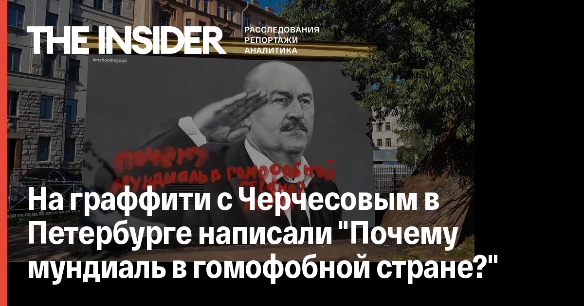 На граффити с Черчесовым в Петербурге написали "Почему мундиаль в гомофобной стране?"