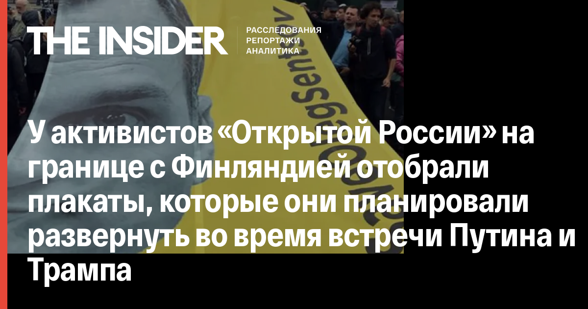 У активистов «Открытой России» на границе с Финляндией отобрали плакаты, которые они планировали развернуть во время встречи Путина и Трампа