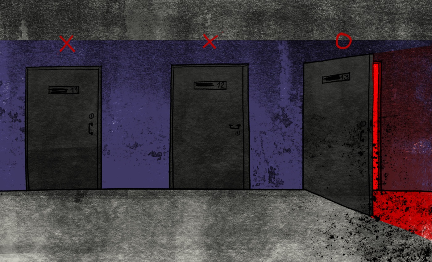Когда Марем Долиеву увозили из здания Центра «Э», ее муж Магомед, скорее всего, был уже мертв. В Центр «Э» Долиева привезли после обыска в квартире супругов в Карабулаке — силовики утверждают, что нашли там две гранаты; родные настаивают, что гранаты подбросили сами силовики. Так или иначе, оперативники Зураб Гиреев и Магомед Арапханов привели Долиева в кабинет №12 на втором этаже — его жена была в это время соседнем кабинете — и передали своему коллеге Алихану Бекову. Гиреев и Арапханов говорят, что они сразу ушли и больше ничего не видели и не слышали.