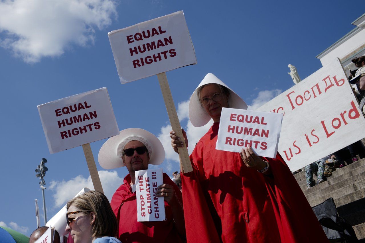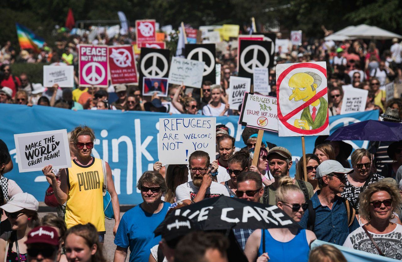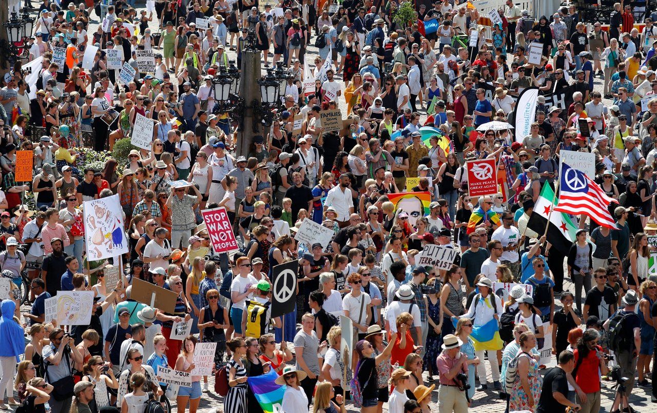 Photos of the thousands of demonstrators taking to Helsinki's streets during the U.S.-Russia summit