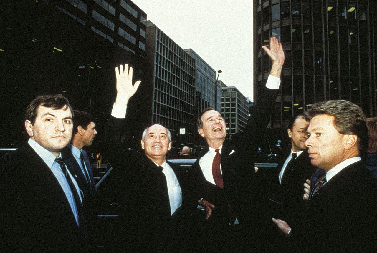 Буш очень хотел поехать вместе с Горбачевым в автомобиле. И в какой-то момент, не доезжая до Белого дома, Горбачев говорит: давай с людьми поговорим. Остановили машину, остановили кортеж, вышли, и там была такая триумфальная сцена: люди им пожимали руки, желали успеха. Буш тогда был вице-президентом и уже собирался баллотироваться в президенты.