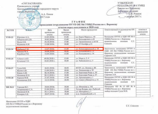 График отчета перед населением с сайта ГУ МВД по Воронежской области