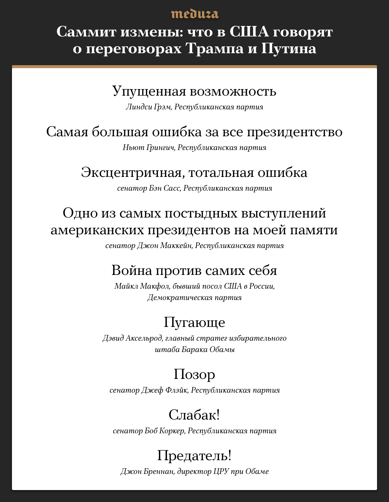 Саммит измены: что в США говорят о переговорах Трампа и Путина. В одной картинке