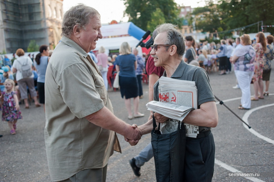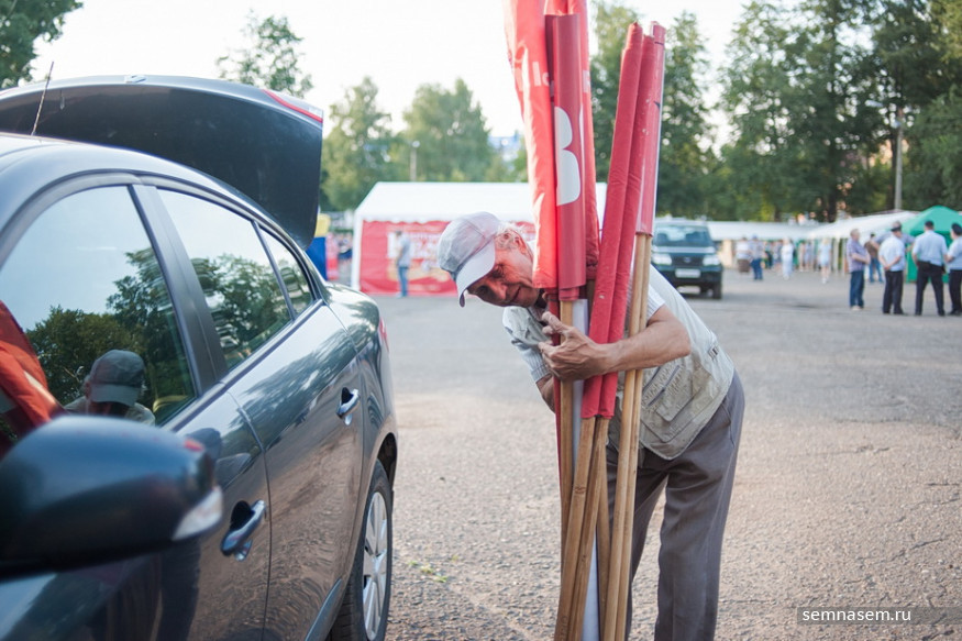 За сценой стояли несколько человек, часть из них сворачивала красные флаги. Вокруг них ходила полиция. Как оказалось, в 18:00 в гайд-парке состоялся митинг, который организовали «Трудовой Киров», партия «РОТ-Фронт» и Российская коммунистическая рабочая партия. Как объяснил «7x7» один из его участников, экс-депутат Заксобрания региона Валерий Туруло, длилась она недолго.