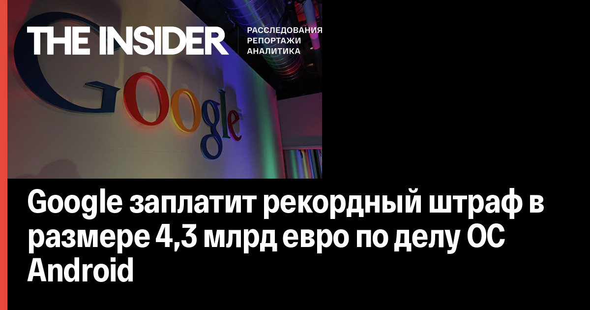 Европейская комиссия (ЕК) оштрафовала Google на 4,35 млрд евро, обвинив корпорацию в злоупотреблении доминирующим положением на рынке операционных систем для мобильных устройств Android.
