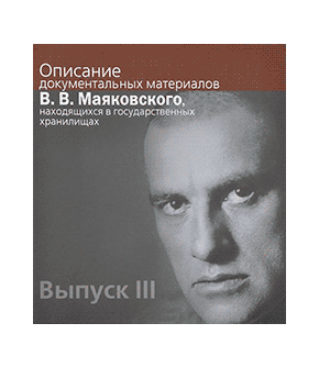 9. Описание документальных материалов В. В. Маяковского, находящихся в государственных хранилищах. Выпуск III / под ред. А. Е. Парниса; составители Е. И. Погорельская (отв. сост.), И. И. Аброскина, А. П. Аксенкин, Л. К. Алексеева, Н. Е. Андреева, Г. А. Антипова, Д. В. Карпов, А. Е. Парнис, Е. А. Снегирева. М.: Политическая энциклопедия, 2013