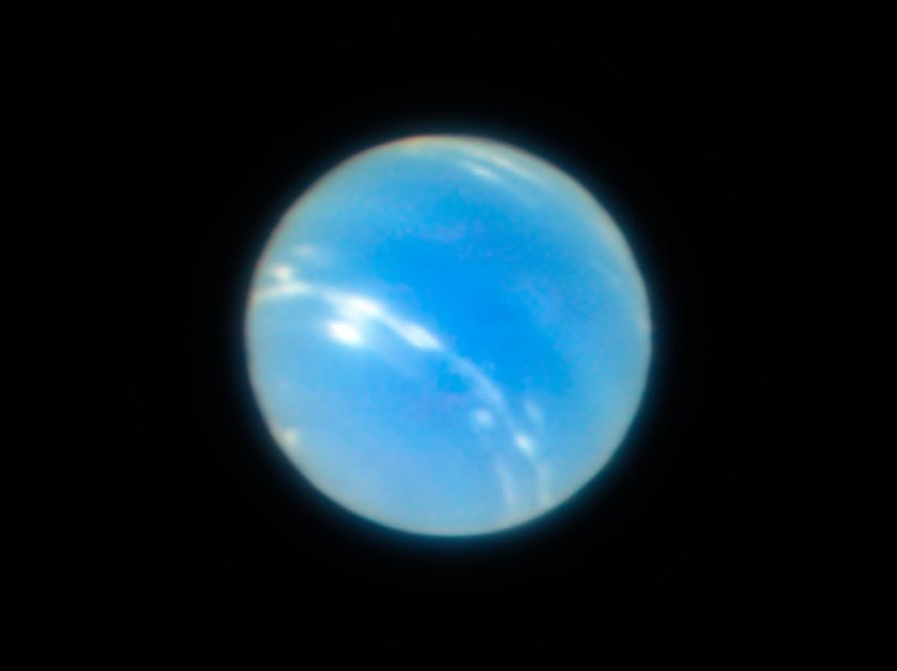 Это изображение планеты Нептун получено во время тестирования адаптивно-оптического режима малого поля с приемником MUSE/GALACSI на Очень Большом Телескопе ESO ESO/P. Weilbacher (AIP) Астрономы Европейской Южной обсерватории (ESO) провели первые наблюдения на Очень Большом Телескопе с использованием новой системы адаптивной оптики в режиме «лазерной томографии», сообщается в пресс-релизе ESO. Получены исключительно четкие тестовые изображения планеты Нептун, звездных скоплений и других объектов. Новая методика может использоваться для коррекции турбулентности на разных высотах в атмосфере. Стало возможно получать с земной поверхности в видимом диапазоне длин волн изображения с четкостью выше, чем у Космического телескопа Хаббла NASA/ESA.