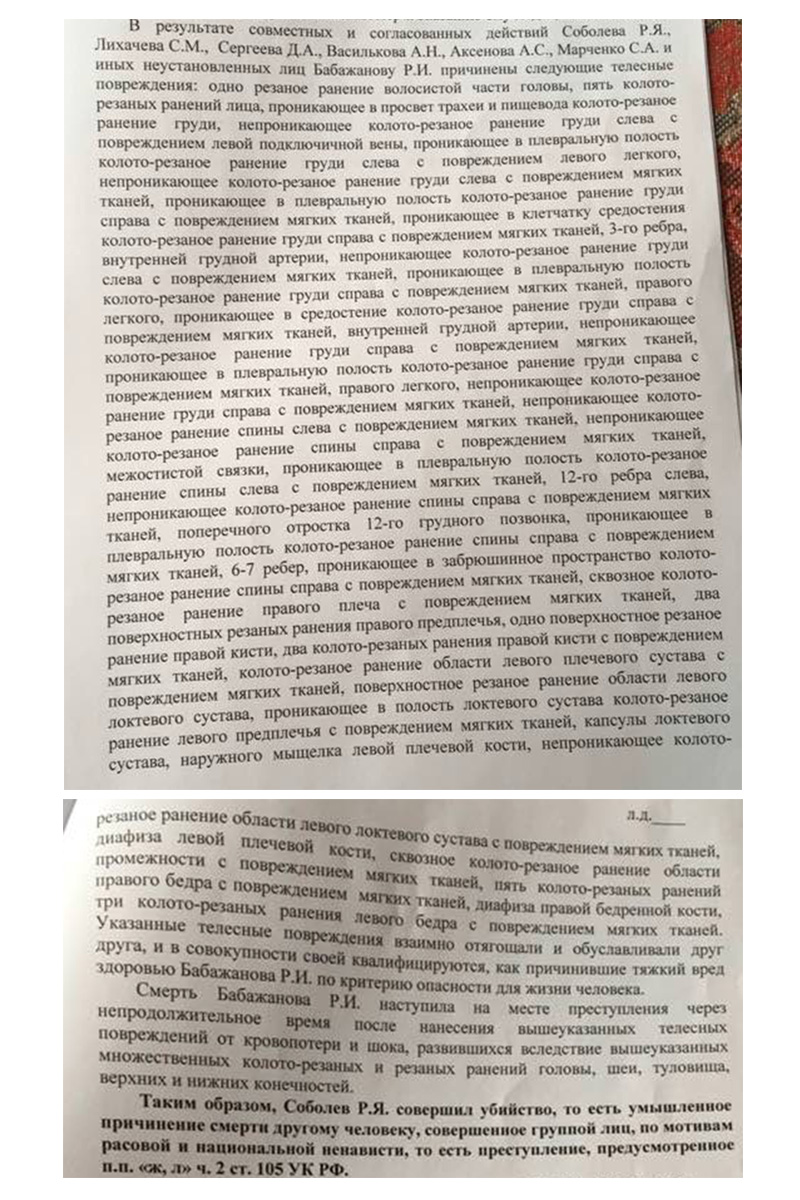 Перечисление ранений, нанесенных Руслану Бабаджанову. Из материалов дела