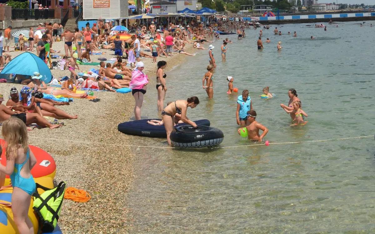 Прибыв в Анапу, направляюсь на центральный пляж. Первая мысль, еще на подходах к нему: «На что жаловался таксист Кирилл?» Отдыхающие в Анапе, кажется, всюду: в кафе почти нет свободных мест, к экскурсионным кассам — очереди. На самом пляже, растянувшемся на несколько километров, муравейник отдыхающих.