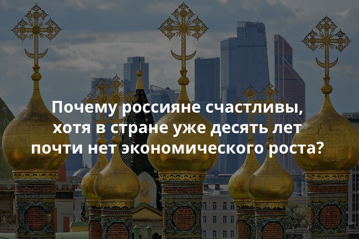 Теперь смотрим на Россию. Десять лет у нас в стране нет экономического роста (по мнению некоторых экономистов, например, профессора финансов Российской экономической школы Олега Шибанова, экономический рост в России есть, однако он происходит очень медленно — прим. «Бумаги»). Значит, у нас на счастье влияют какие-то идеологические факторы. Религия? Вряд ли. Конечно, после распада Советского Союза, даже немного раньше, люди интересовались религией, но в целом Россия остается очень секулярной, неверующей страной. Да, большинство русских говорят, что разделяют православные традиции, но в церковь они не ходят, посты не соблюдают. Есть исключения в виде Дагестана, Чеченской республики, Ингушетии, где очень высокая степень религиозности, там достижение счастья через религию действительно вероятно. Региональные опросы показывают, что в Чеченской республике люди счастливее, чем в России в целом.