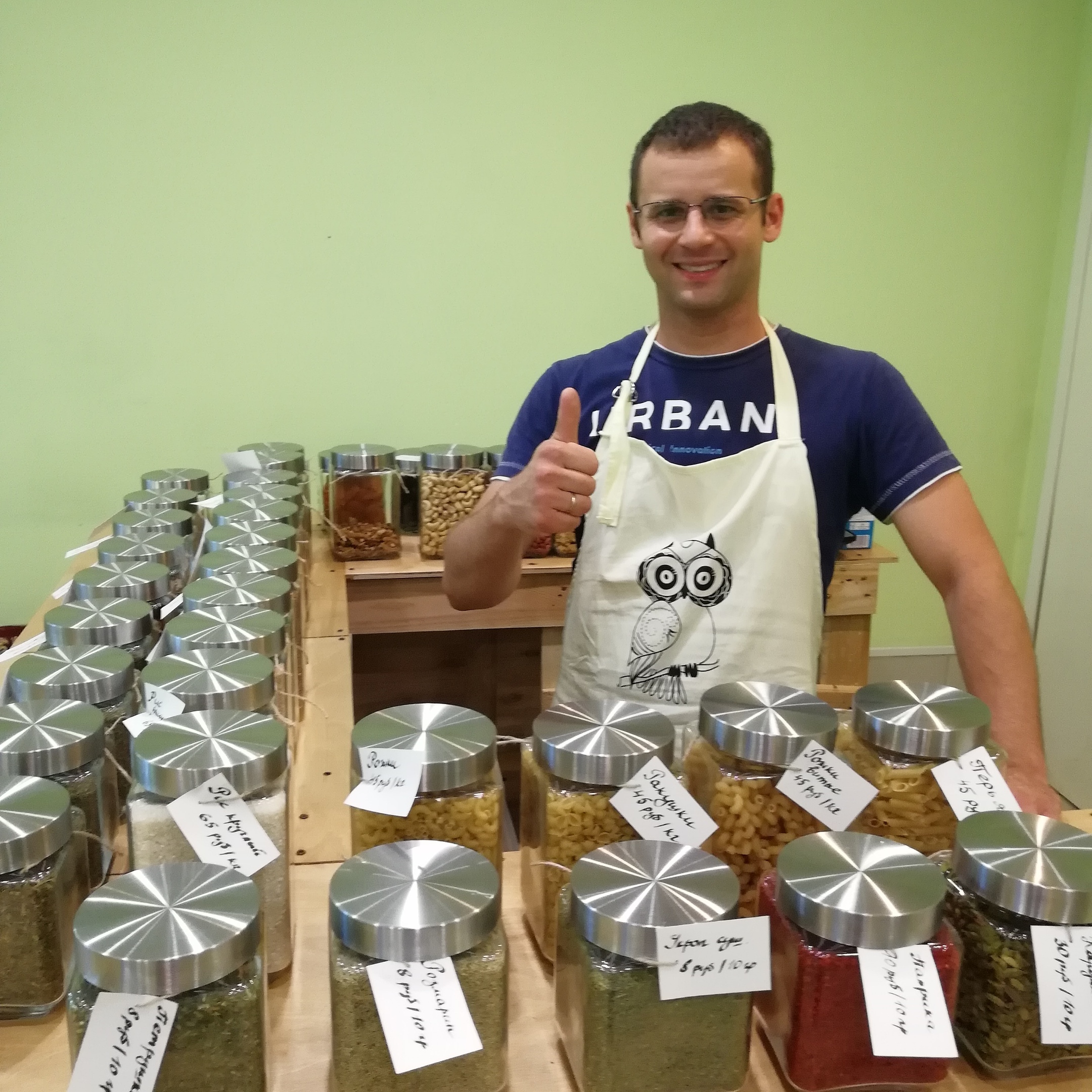 По законодательству мы имеем право продавать вот так, на развес. Главное, чтобы тара, в которую мы насыпаем продукт, была чистая. Это всегда отслеживается. Даже если к нам приносят свою тару, мы смотрим на ее состояние. Если видим грязную, то предлагаем наши банки и экомешки: они точно чистые.