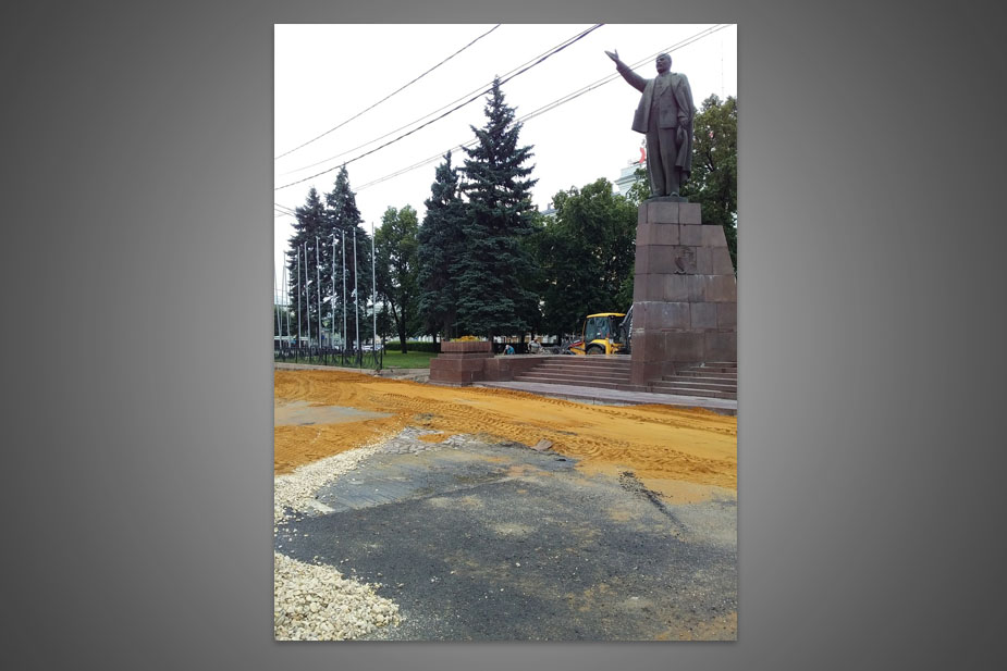 — При линейных разрытиях для установки бордюров и прокладки кабеля брусчатка вырывается на многих участках. Ее просто убирают везде, где она мешает работам. И куда-то вывозят. Если бы действия по благоустройству хоть как-то брали в расчет судьбу исторических объектов, камни старинной мостовой были бы собраны, чтобы ее впоследствии воссоздать, пусть и на новом месте в каком-нибудь городском парке. Однако мы видим, что этого не происходит. В указе президента России от 24 декабря 2014 г. №808 «Об утверждении Основ государственной культурной политики» указано: «Целями государственной культурной политики также являются: „сохранение исторического и культурного наследия“». Как следует расценить «сохранение» культурного наследия на пл. Ленина в Рязани в свете президентского указа?