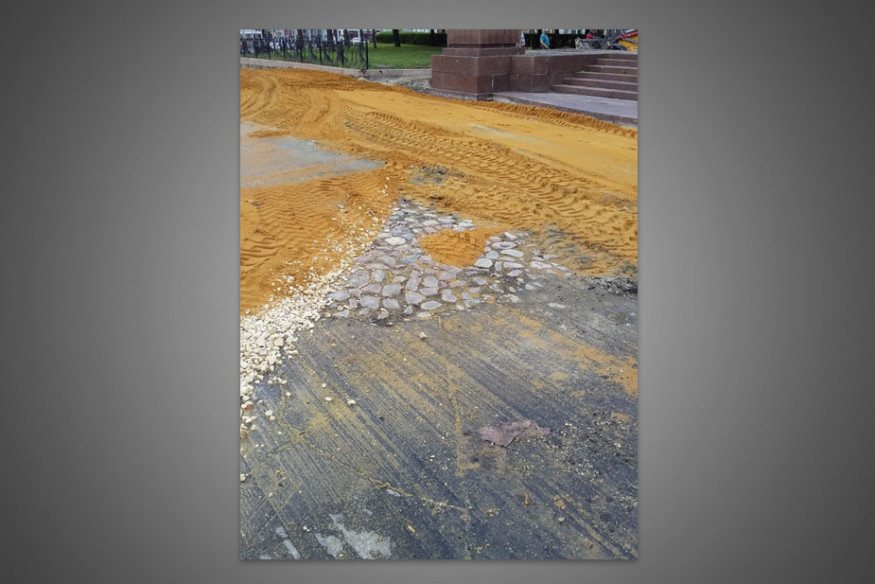 Чупейкина описала ход событий: «Не успели археологи возрадоваться находке, как строители уничтожили средневековую брусчатку. Ее безжалостно раскопали и вывезли на 10 КамАЗах в неизвестном направлении. 16 июля обнаружили, а 17 уже уничтожили! В образовавшиеся траншее довольные собой строители продолжили ударными темпами устанавливать бетонные бордюры. Согласно проекту. Занавес. Кто ответит за такое средневековое варварство?»