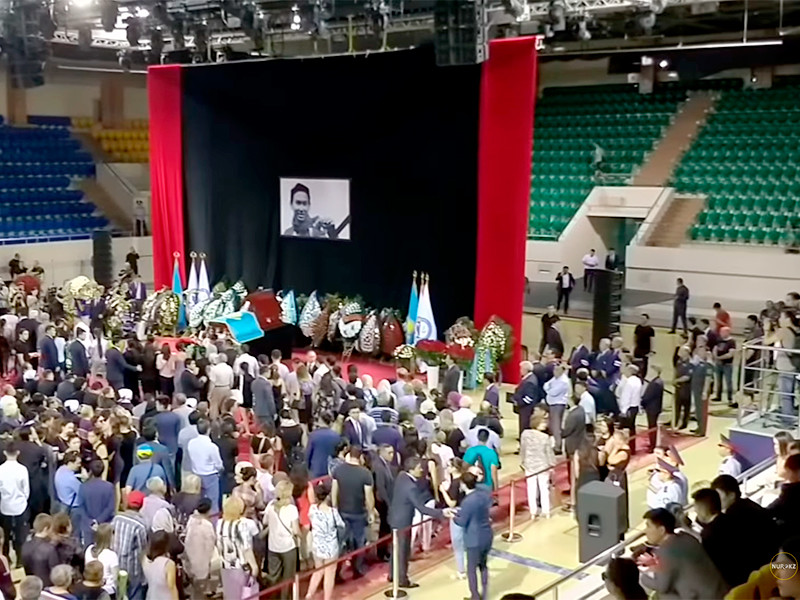 Жители столицы Казахстана тоже смогли почтить память спортсмена. Одновременно с прощанием в Алма-Ате гражданская панихида прошла в спортивном комплексе "Барыс-Арена" в Астане, где собрались представители спортивного сообщества, заслуженные спортсмены и тренеры, а также жители столицы.