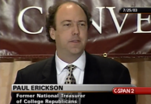 - В 2012-2014 годах Эриксон входил в правление влиятельного Американского консервативного союза (American Conservative Union, ACU), который каждый год проводит крупный съезд консерваторов — Конференцию консервативной политической деятельности. Бозелл предупреждал ACU о своих финансовых разногласиях с Эриксоном. Это, как сказал председатель ACU Мэтт Шлапп, «нас очень огорчило». Настолько, что Эриксон был выведен из правления ACU, ему также дали понять, что союз больше не приветствует и его появлений на ежегодных конференциях.