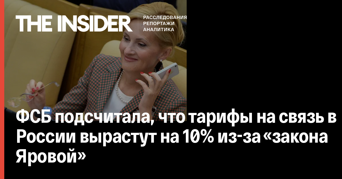 ФСБ подсчитала, что тарифы на связь в России вырастут на 10% из-за «закона Яровой»