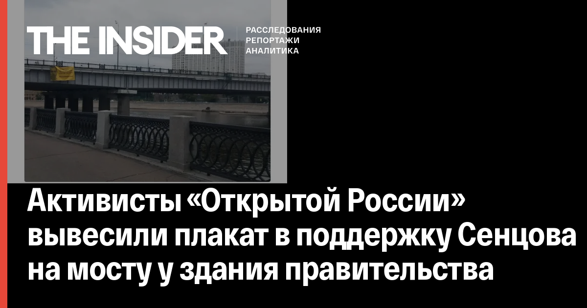 Активисты «Открытой России» вывесили плакат в поддержку Сенцова на мосту у здания правительства
