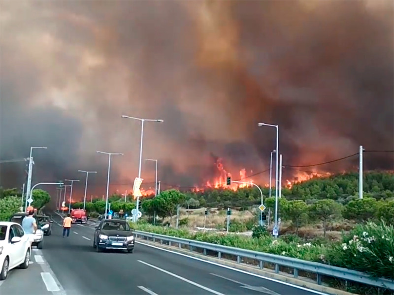 Вокруг Афин в течение дня возникло несколько очагов пожаров, на тушение которых переброшены специалисты из многих регионов страны. Утром возник сильный пожар в районе прибрежного курортного города Кинета (примерно в 50 км к западу от Афин), во второй половине дня заполыхали леса близ городков Рафина, Пикерми, Мати, Неос Вутзас (к востоку от Афин), а также на склонах горы Пендели (к северу от столицы).
