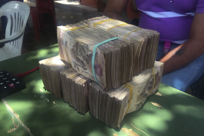 Деньги на столе у продавца, Венесуэла. Фото: Girish Gupta / Reuters