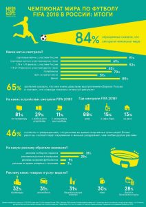 - Согласно данным проведенного Mediascope опроса (телефонный опрос 17 июля в городах России, выборка 1300 человек), 88% зрителей сказали, что смотрели матчи FIFA дома, 15% - в кафе и барах, 13% - на дачах или в загородных домах, 10% – в гостях. 75% зрителей сказали, что чаще всего смотрели матчи по телевизору, 25% - на других устройствах (компьютеры, смартфоны и так далее).