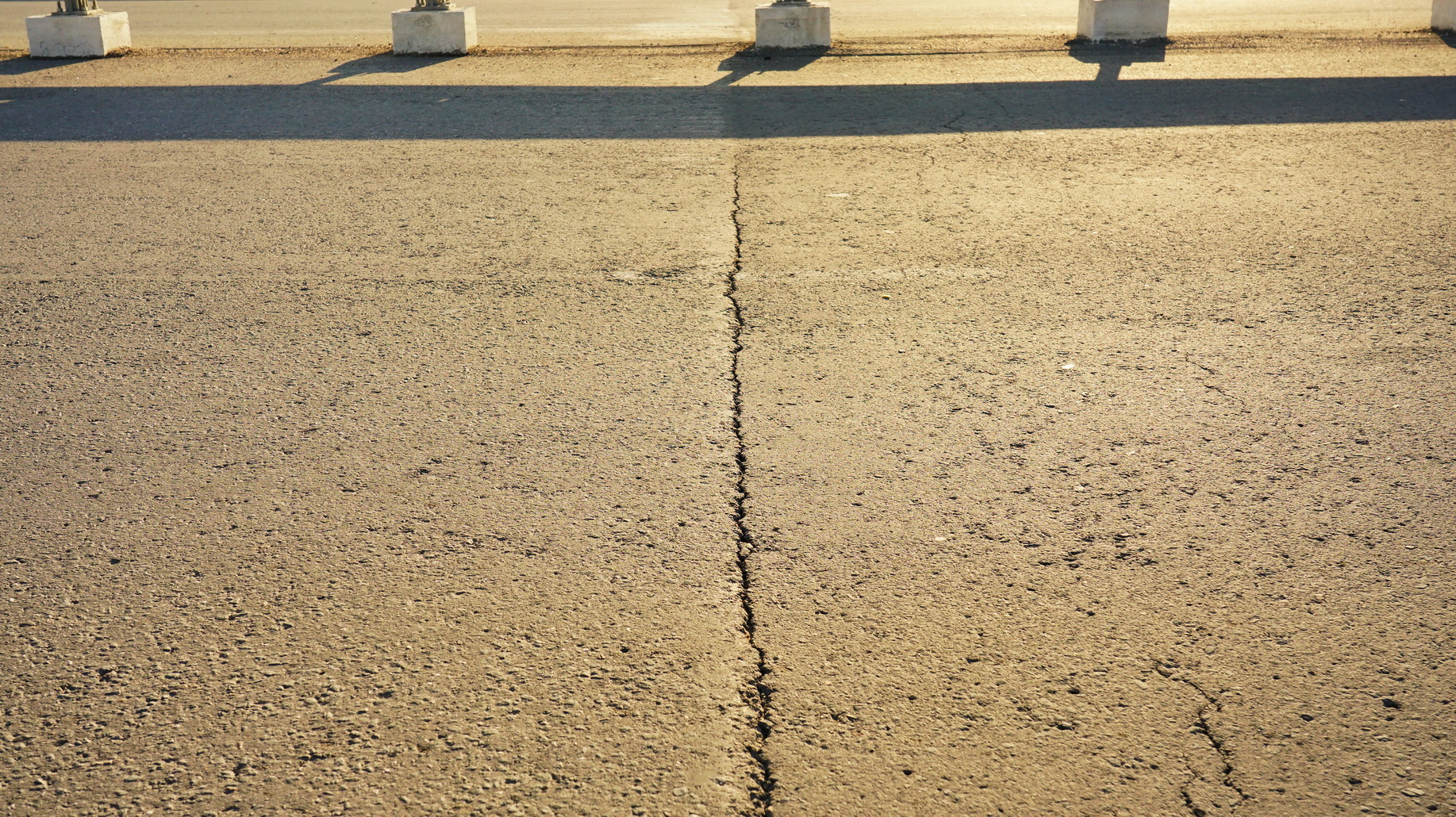 Сообщается, что трещины появились сразу на двух полосах движения и практически в тех же местах, где мостовые плиты перекрытия стыкуются с основной дорогой.