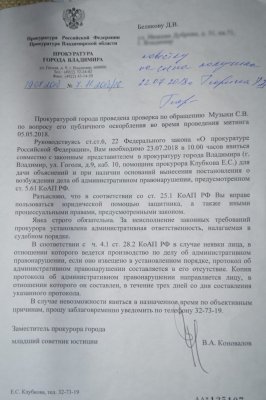 Участника акции 5 мая во Владимире вызывали в полицию после заявления чиновника