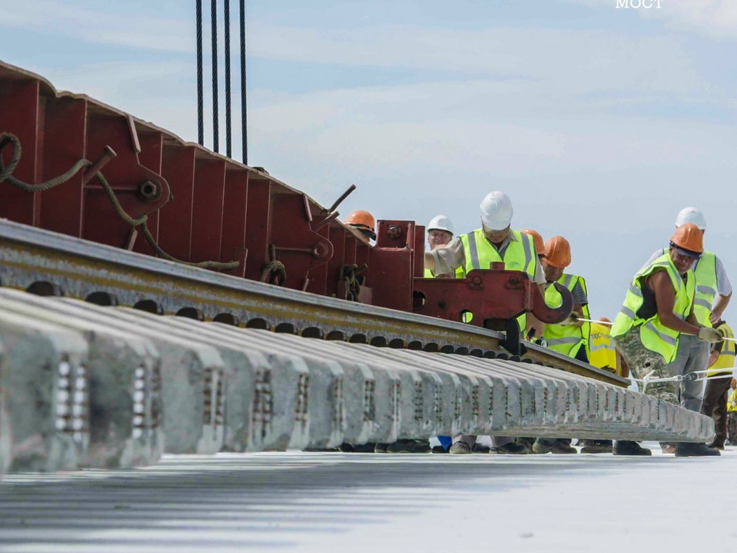 Строители Крымского моста начали укладку рельсов на его железнодорожной части, говорится в сообщении на сайте инфоцентра.