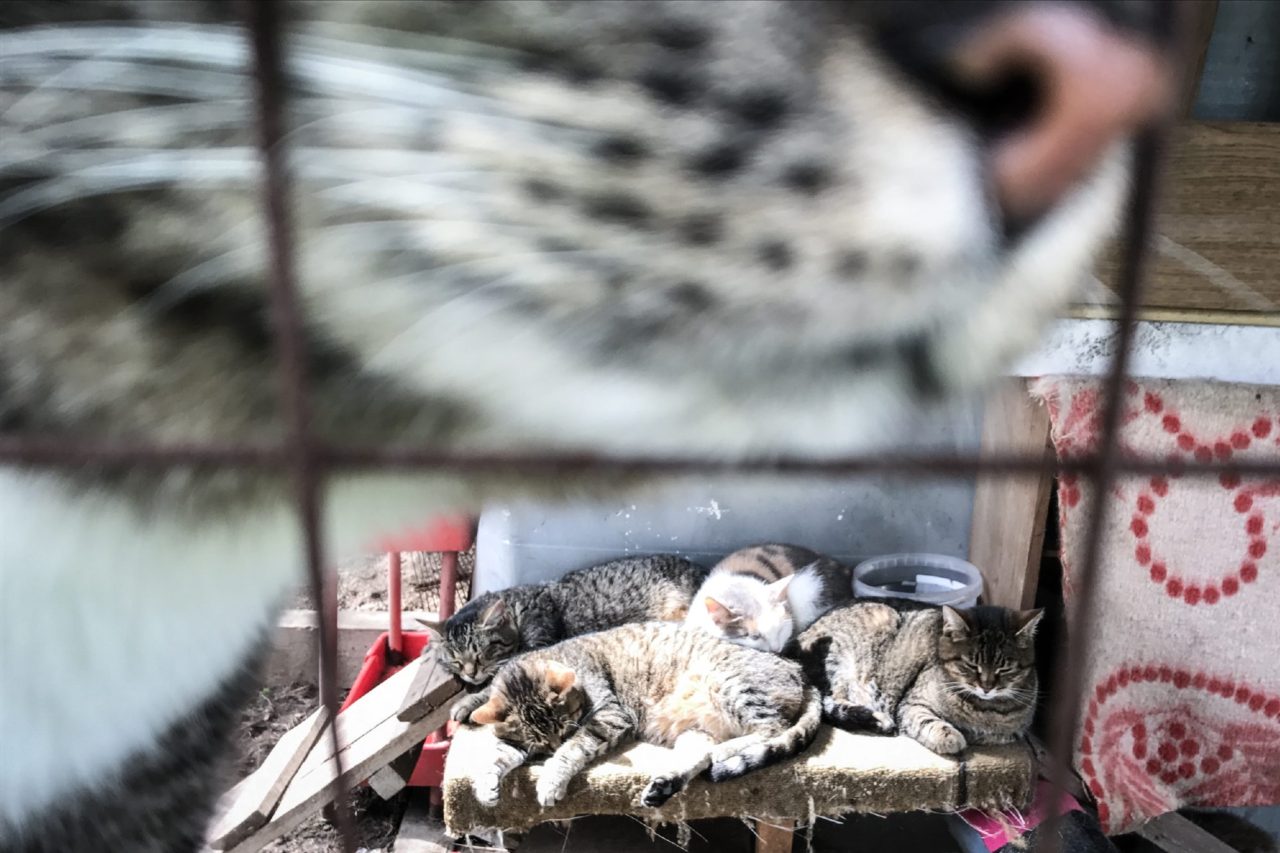 Сколько животных обитают на участке со старыми яблонями, сразу не поймешь. Вольеры в тени деревьев, собаки ведут себя тихо. И внимание сразу переключается на кошачье царство у входа. Открытый вольер с большим теплым домом, лежанками, полочками и деревьями густо заселен пушистой, холеной братией. Котаны делятся на тех, кто тут же собирается вокруг людей, мурчит и лезет обниматься, и тех, кто свысока надменно на все поглядывает. Невозможно понять, как Лена всех их помнит по именам и судьбам. Вот этот в сильный мороз замерзал на остановке, эту отняли у собак, вот этих спасли от бульдозеров в заброшенном приюте. Рыжего породистого красавца Деда Лена спасла от усыпления. Хозяйка умерла, родственникам кот оказался обузой. Дед доверчиво тычется мордочкой в руку, просит, чтобы погладили. Сердце рвется — так хочется его забрать!