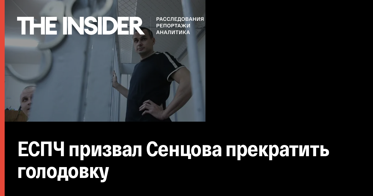 Европейский суд по правам человека призвал украинского режиссера Олега Сенцова прекратить голодовку, а Россию — обеспечить ему необходимое лечение. Как говорится в заявлении ЕСПЧ, такое решение было принято в качестве обеспечительной меры по иску «Сенцов против России».
