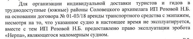 Мы пытаемся организовать на Соловках новый вид транспорта – аэробот «Нерпа». Но... Сначала шум аэробота без объяснения причин не понравился местным экологам: просто не понравился – и всё. Наше предложение обозначить на картах охраняемые гнездовья птиц и дать рекомендации их обхода осталось без ответа. Зато появилось заявление в транспортную прокуратуру архидиректора Соловецкого музестыря Шутова Порфирия Викторовича: шум стал мешать ему. В результате нашей переписки с прокуратурой мы получили чудный кусок текста, где аэробот превратился в эротический объект, но всё же был признан «маломерным судном», хотя логика текста здесь явно не человеческая…
