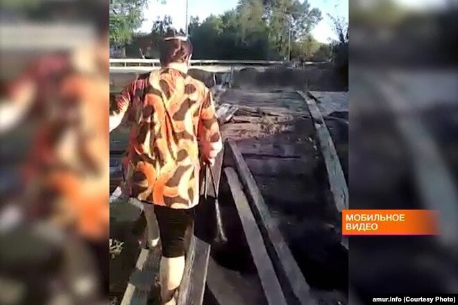 Приамурье: жителям приходиться ходить по разрушенному мосту