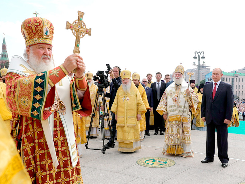 Президент Владимир Путин в субботу принял участие в праздничных мероприятиях по случаю 1030-летия крещения Руси. Сначала он принял участие в патриаршей литургия, которая впервые прошла на Соборной площади Кремля под открытым небом. А затем он присоединился к крестному ходу и вместе с верующими прошел до Боровицкой площади к памятнику князю Владимиру.