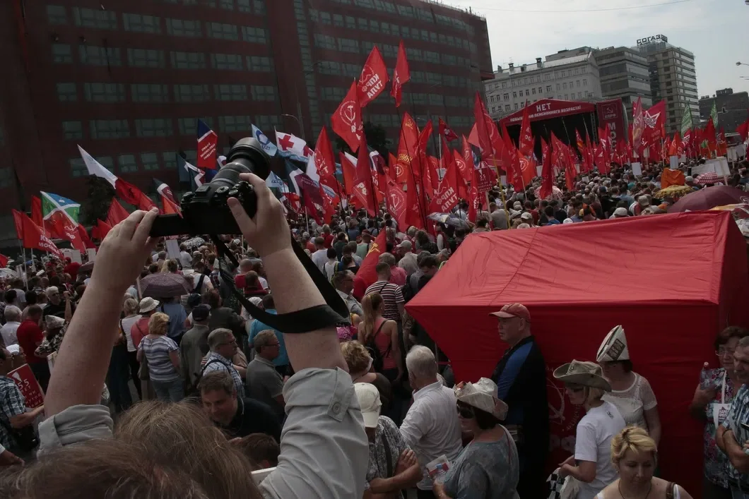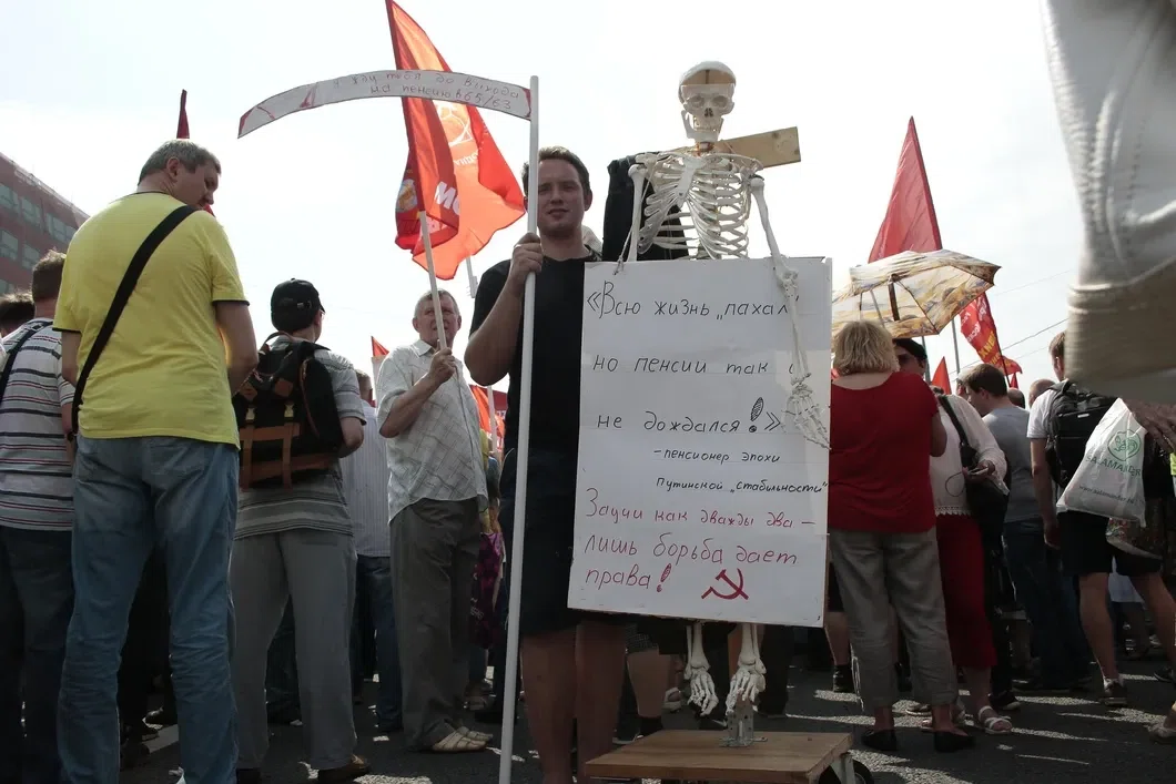 В Москве на проспекте Сахарова прошла акция против повышения пенсионного возраста, организованная КПРФ.