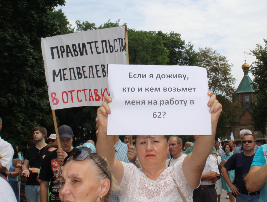 Как только премьер-министр России Дмитрий Медведев 14 июня 2018 года объявил о планах правительства повысить пенсионный возраст, в стране начались акции протеста против этой реформы. Вторая волна митингов началась, когда депутаты областных заксобраний в разных субъектах федерации поддержали пенсионную реформу. 28 июля в регионах России прошли акции против повышения пенсионного возраста. Согласно пенсионной реформе, мужчины в России будут выходить на пенсию в 65 лет, а женщины — в 63 года.