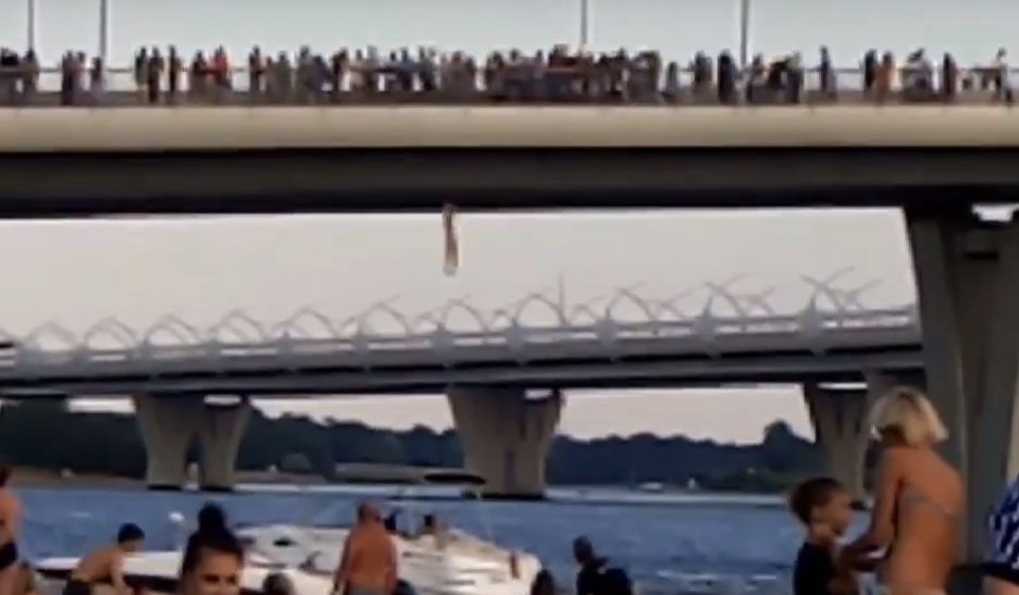 Петербурженка 28 июля прыгнула в воду с Яхтенного моста. Видео с прыжком опубликовали очевидцы в группе «Признавашки ДТП и ЧП».