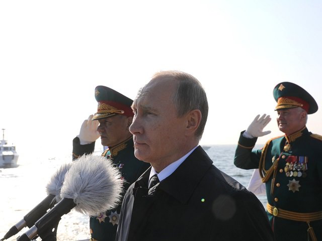 Затем Владимир Путин поздравил всех участников и гостей парада, отметив: «Российский флот успешно решает задачи обороноспособности страны, вносит весомый вклад в борьбу с международным терроризмом, играет важную роль в обеспечении стратегического паритета».