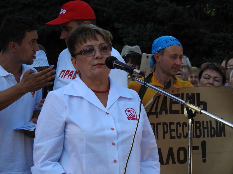 Надежда, пришедшая на митинг коммунистов 26 июля вместе с мужем, расстраивается из-за его здоровья: