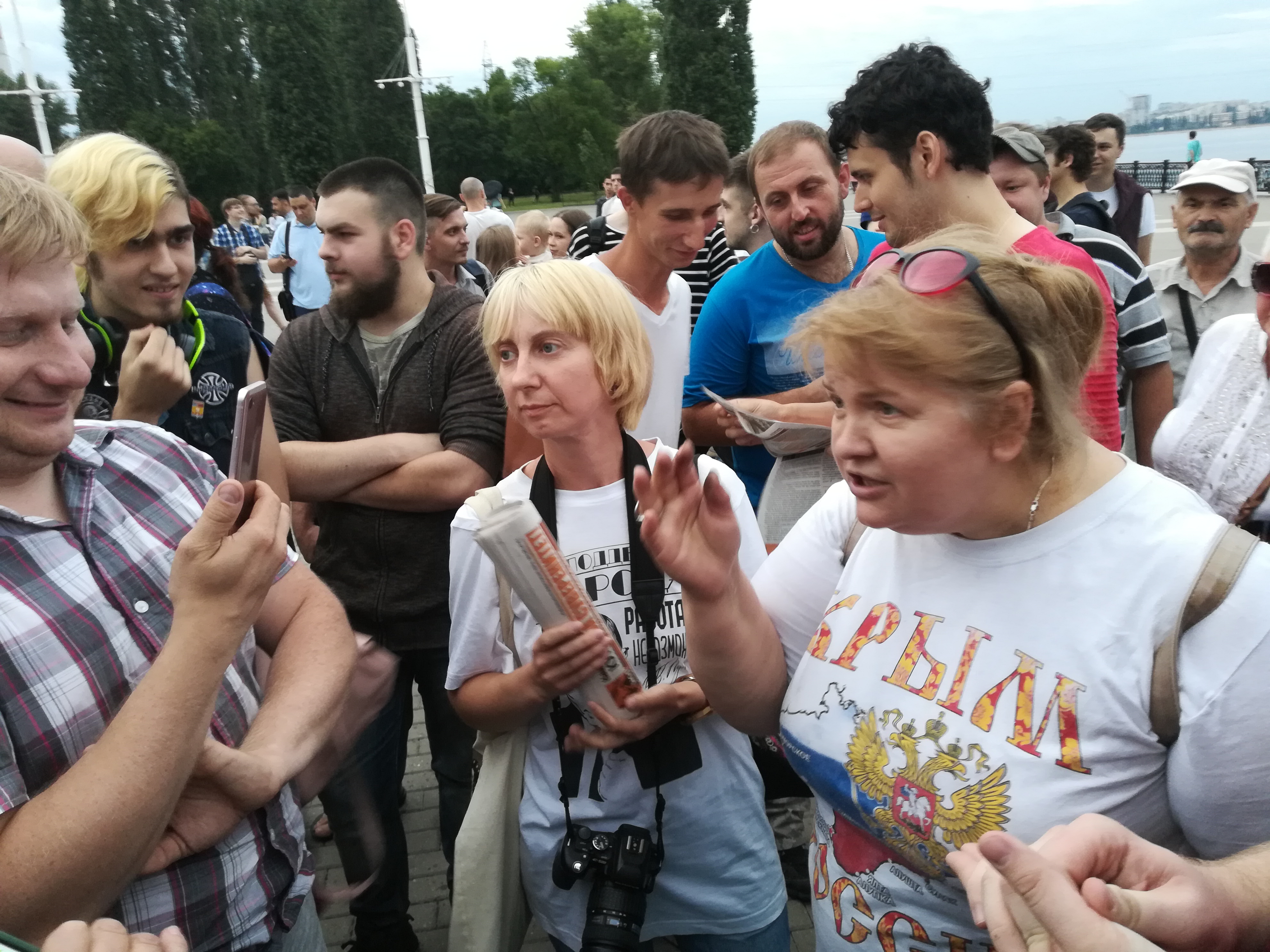 – Люди должны выходить на пенсию в стандартном возрасте. У меня отец не дожил менее двух месяцев до пенсии… Людям нужно думать, за кого голосовать. Я принципиально голосовал против Путина, – сказал участник митинга Александр Татаринов, представившийся как борец с архитектурным бандитизмом.