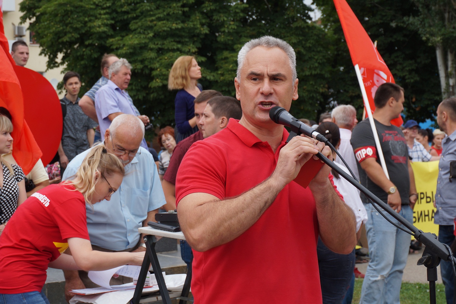 – Мы [в обкоме КПРФ] проанализировали ситуацию и пришли к выводу, что сейчас у нас вряд ли получится собрать 10-тысячный митинг. Большинство людей в отпусках, молодежь тоже отдыхает от учебы. Возможно, получится в сентябре после губернаторских выборов, –объяснил преподаватель, член фракции КПРФ орловского горсовета Евгений Прокопов.