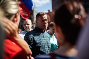 Алексей Навальный на митинге против пенсионной реформы. Фото: Евгений Фельдман для The Bell