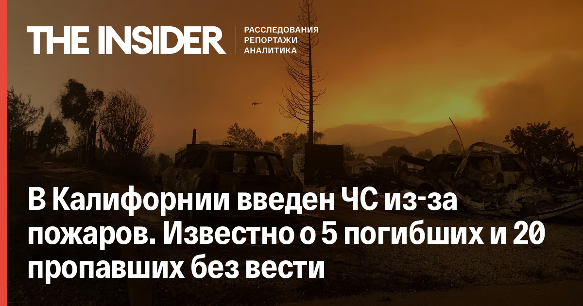 В Калифорнии введен ЧС из-за пожаров. Известно о 5 погибших и 20 пропавших без вести