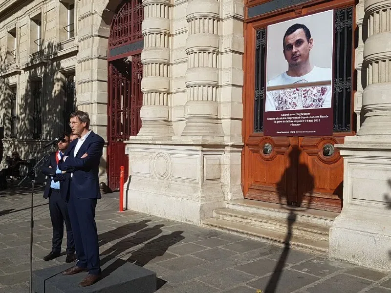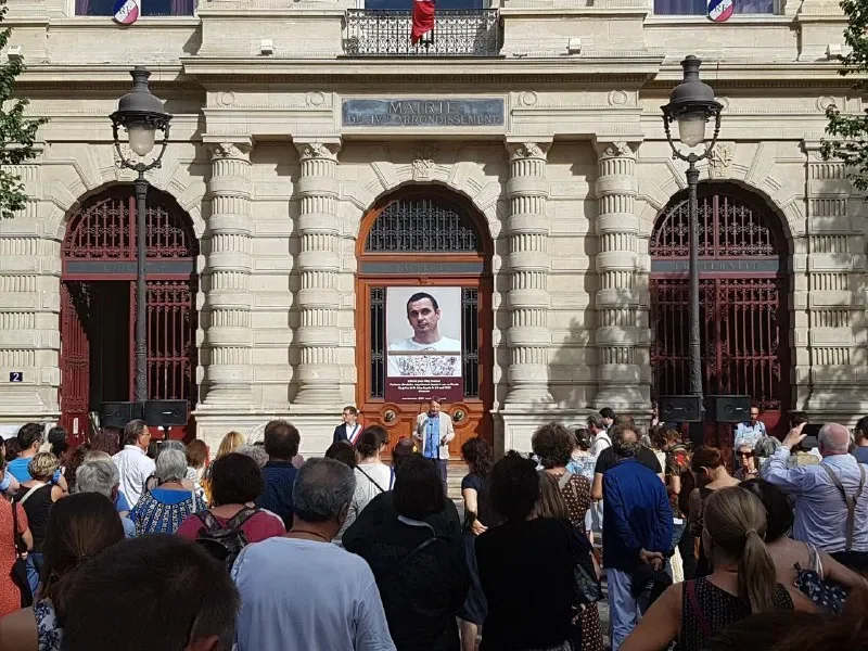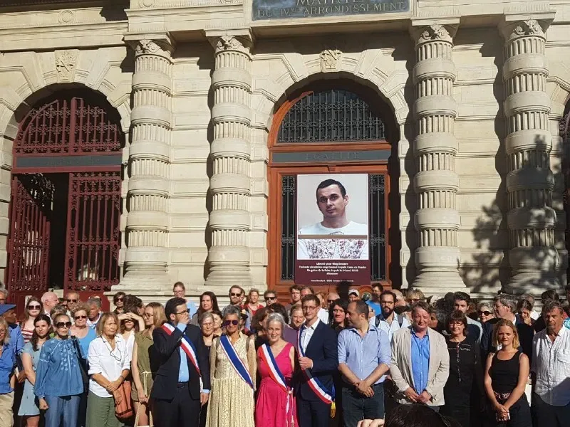 Вечером в понедельник, 30 июля, в мэрии IV округа Парижа прошла акция в поддержку украинского режиссера Олега Сенцова.