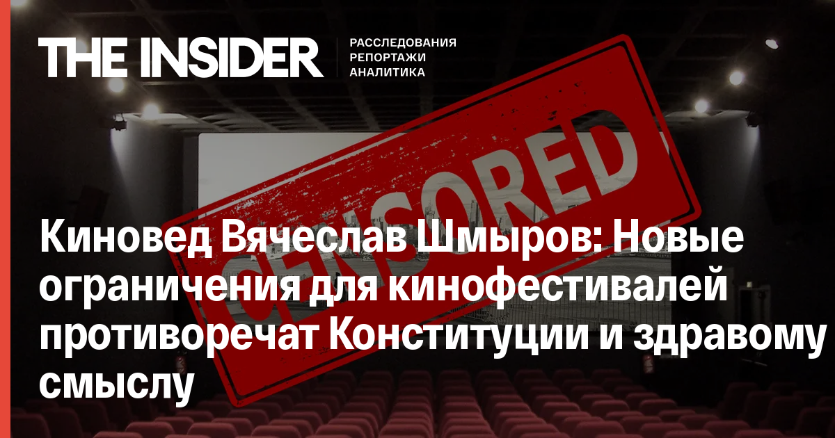 Киновед Вячеслав Шмыров: Новые ограничения для кинофестивалей противоречат Конституции и здравому смыслу
