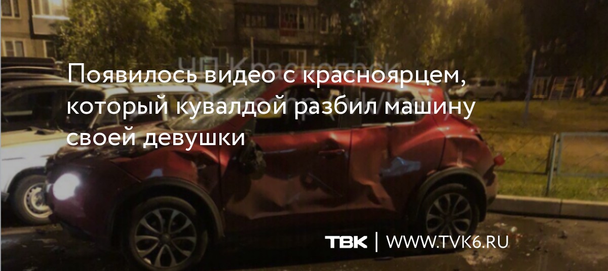 Кадры, снятые с места инцидента появились в группе «ЧП Красноярск» днем 30 июля. На видео, снятом из окна жилого дома видно, как мужчина ходит вокруг красного Nissan и кувалдой наносит удары по кузову авто.