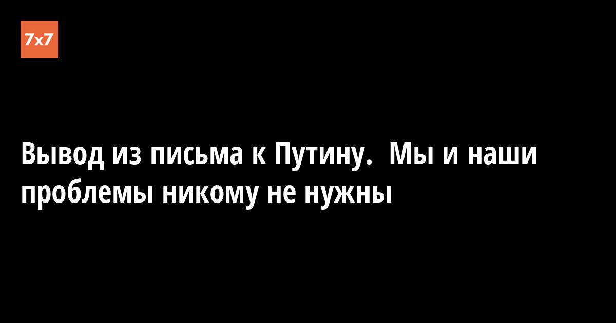 Вывод из письма к Путину. Мы и наши проблемы никому не нужны