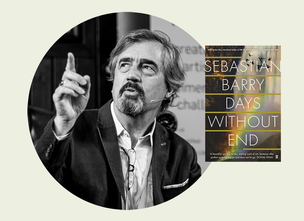 Себастьян Барри и обложка зарубежного издания романа «Бесконечные дни»