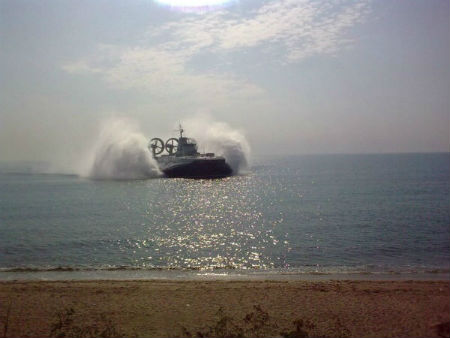 КОПИРАЙТ ПОД ПОДУШКОЙ Малый десантный корабль на воздушной подушке "Зубр" водоизмещением 555 тонн впервые оказался на вооружении советского флота в 1988 году. "Зубр" - самый большой в мире корабль на воздушной подушке, он способен брать на борт до 140 десантников, а также 3 танка или 10 бронетранспортеров или 8 боевых машин пехоты. Кораблю для высадки десанта доступно 70 процентов береговой линии морей и океанов мира, судно может передвигаться по земле. Он несет на вооружении две пусковые установки МС-227 для ракетных снарядов калибром 140,3 миллиметра и две автоматических зенитных установки АК-630 калибром 30 миллиметров.