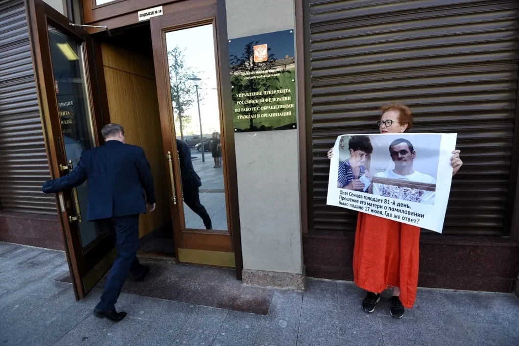 На 81-й день бессрочной голодовки Олега Сенцова, в центре Москвы у администрации президента прошли одиночные пикеты в его поддержку.