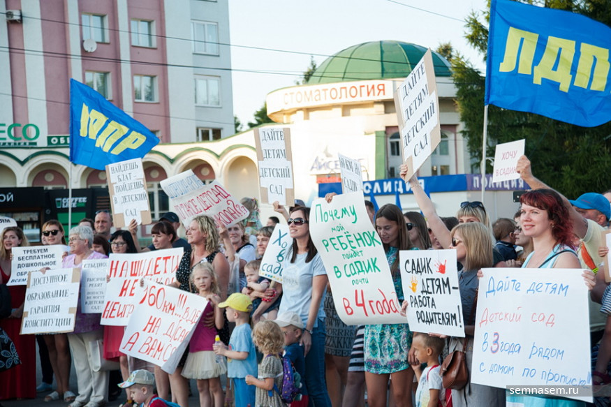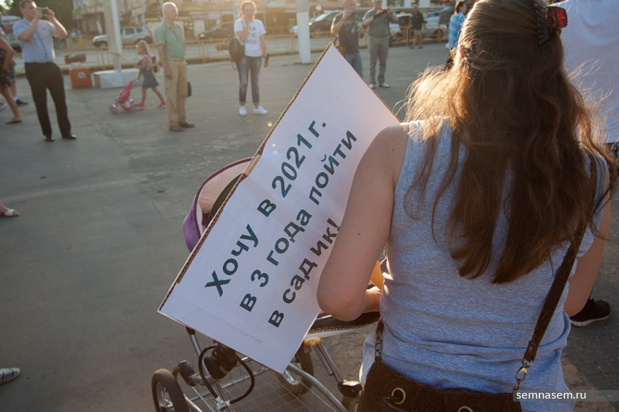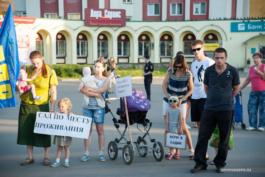 Пикет организовала инициативная группа родителей, чьи дети не ходят в детский сад. Как рассказал «7x7» один из ее участников Дмитрий Макаров, пока в группе людей немного — девять человек, в основном молодые мамы. За помощью группа обратилась к партии ЛДПР, которая стала соорганизатором акции. У Макарова растет сын, которому в октябре исполнится три года, но в детский сад родители его устроить не могут.